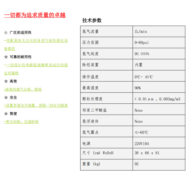 相较于传统钢瓶氮气,该产品无需频繁换气、无需高压钢瓶存储,具备运行成本低、维护简单、操作便捷、占地面积小等核心优势,有效降低实验室用气成本与运维复杂度,是中小流量实验室惰性气源的理想选择。
