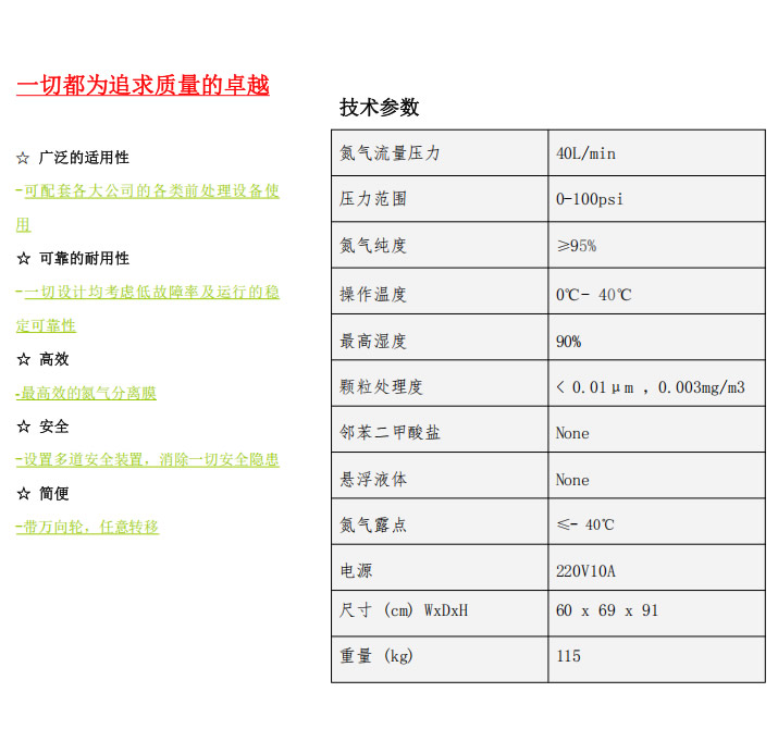 相较于传统钢瓶氮气,该产品无需频繁换气、无需高压钢瓶存储,具备运行成本低、维护简单、操作便捷、占地面积小等核心优势,有效降低实验室用气成本与运维复杂度,是中小流量实验室惰性气源的理想选择。